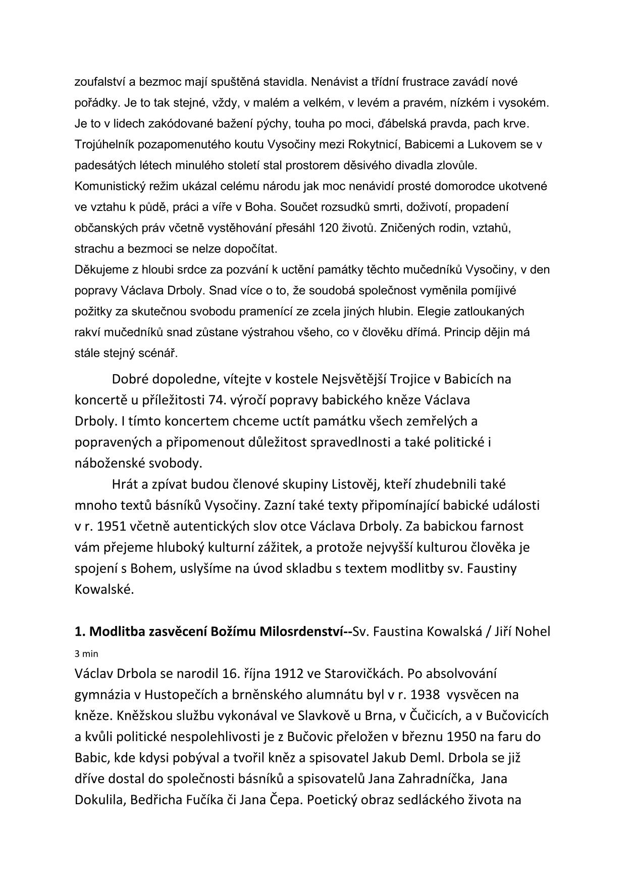 10. 8. 2025 KONCERT K VÝROČÍ POPRAVY VÁCLAVA DRBOLY