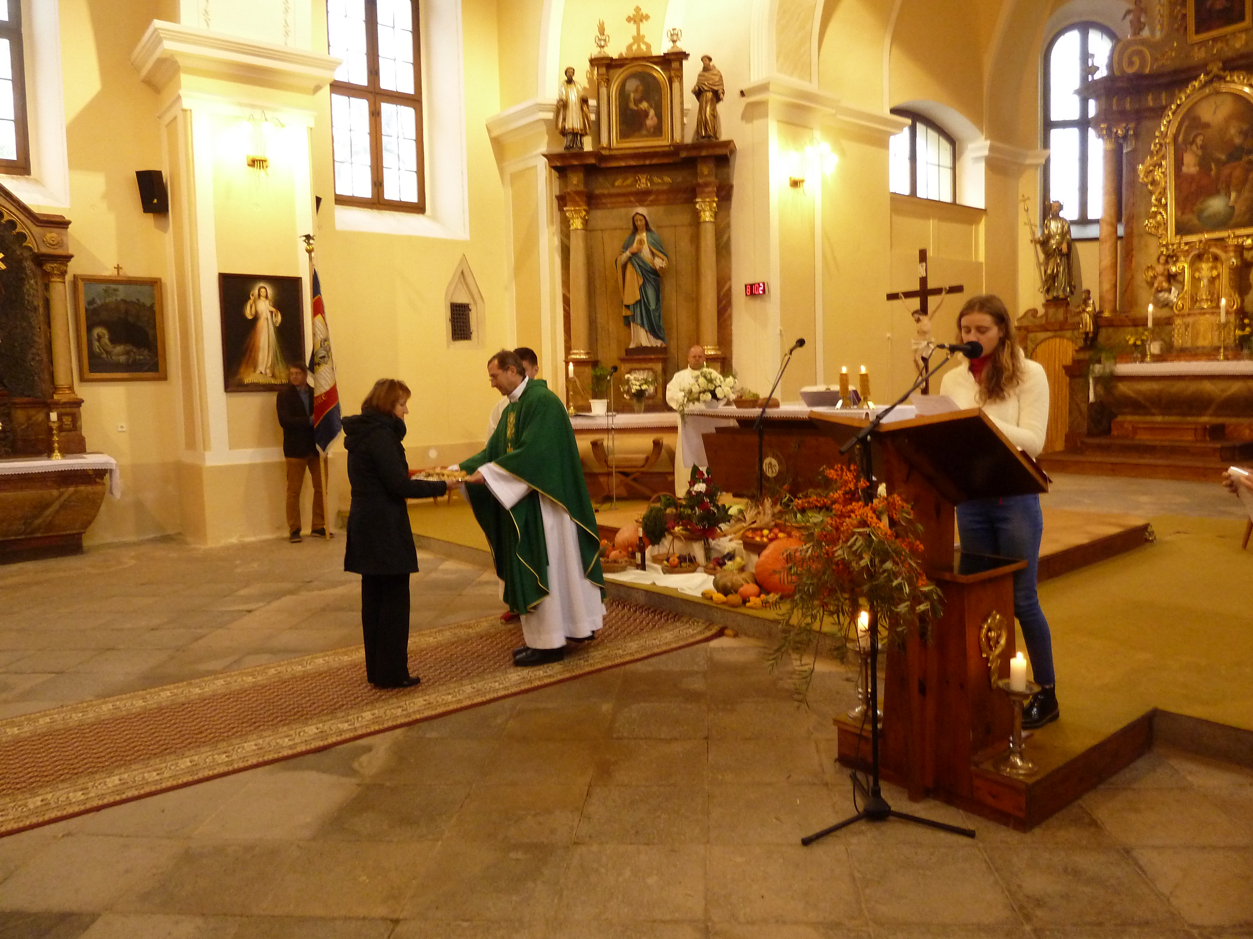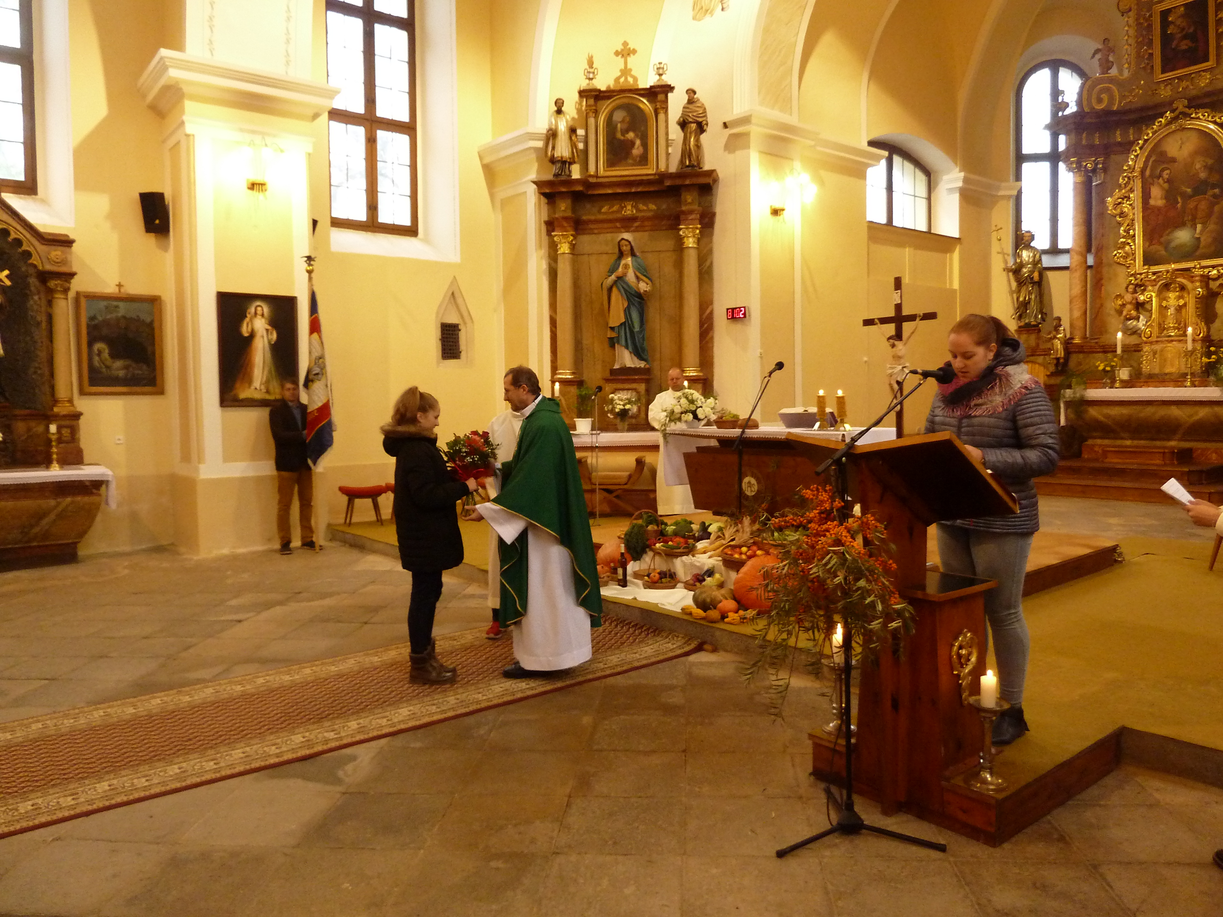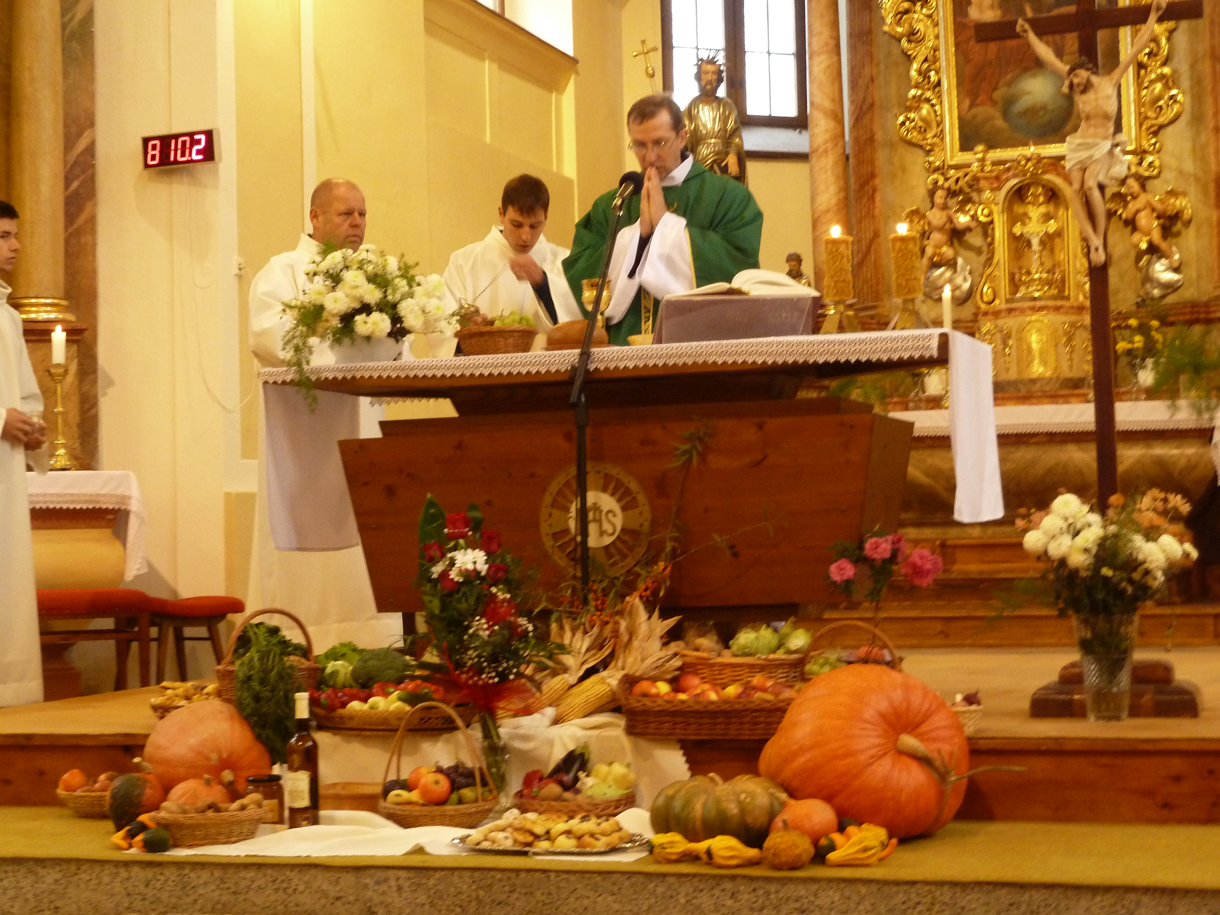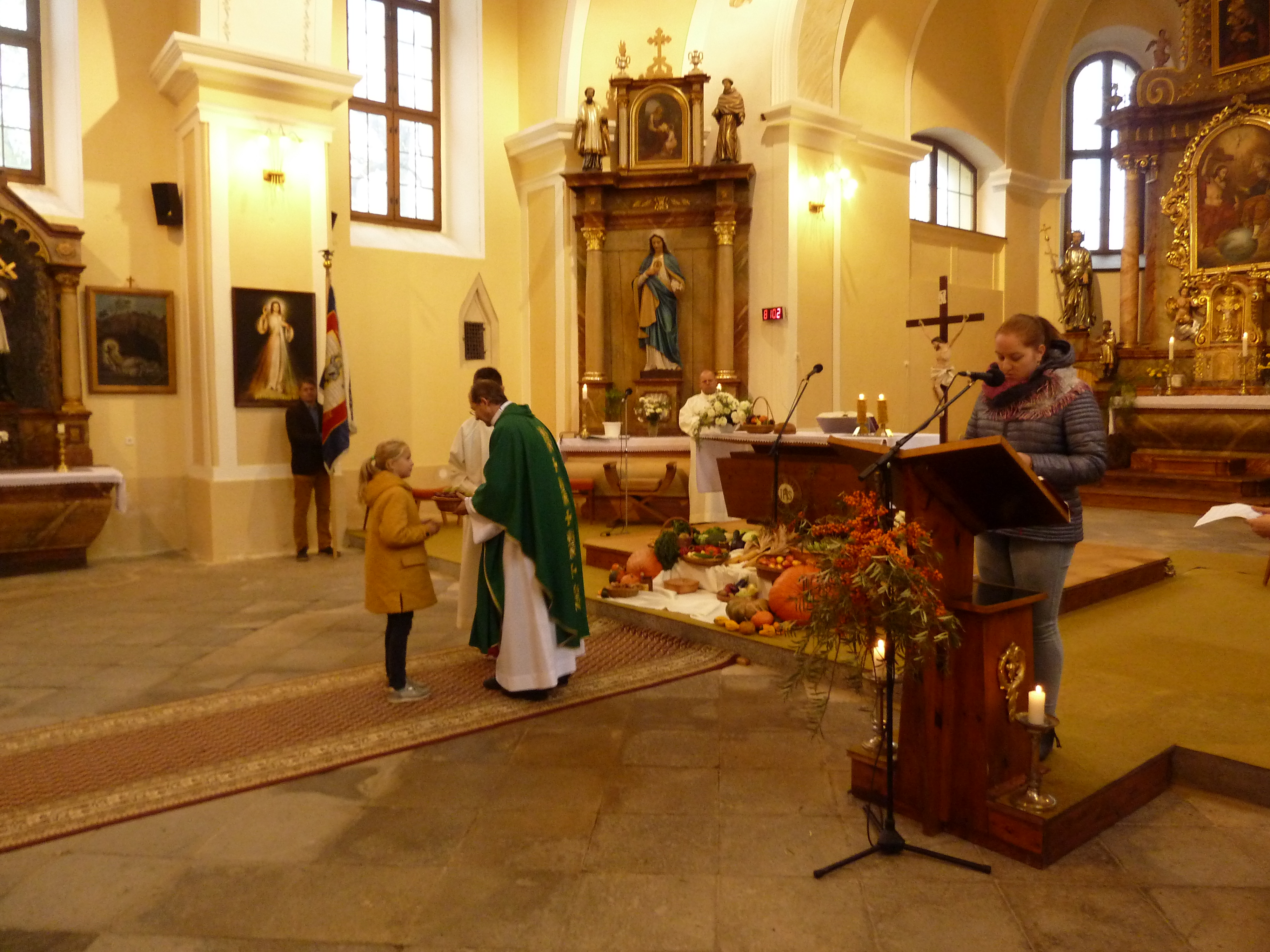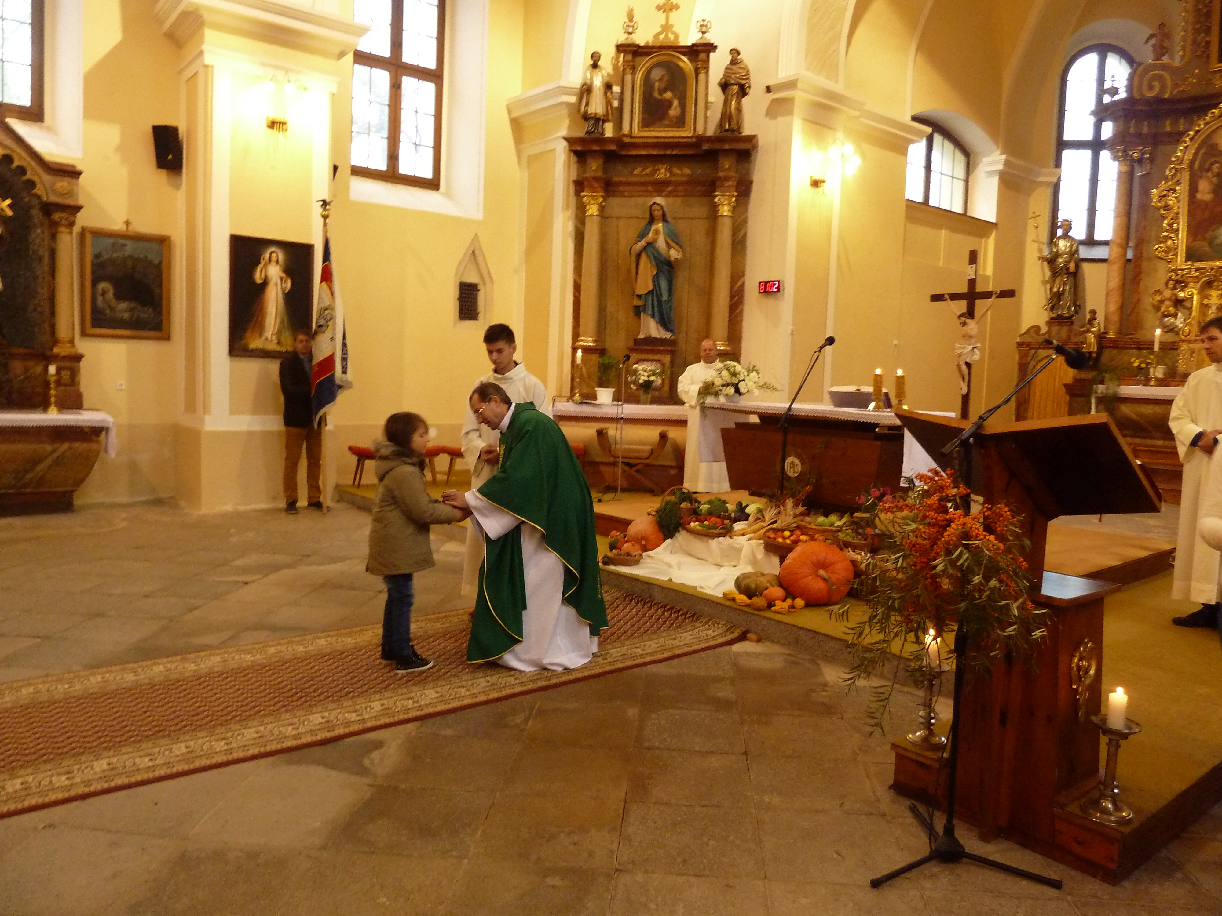V neděli v den státního svátku 28. října jsme v babické farnosti oslavili hned několik věcí. Při mši svaté jsme poděkovali za úrodu letošního roku. Před obětním stolem jsme mohli obdivovat krásně naaranžované plody, které vyrostly na našich stromech a záhonech, polích a zahradách. Tolik krásných tvarů, barev a chutí! I když se hospodáři starají, je to Hospodin, který dává počasí a růst, a proto mu chceme děkovat. V obětním průvodu potom děti i dospělí přinášeli dary, kterými jsme vyjadřovali, za co vše chceme Bohu děkovat a prosit.