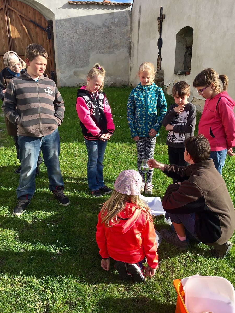 Paní katechetka pro děti připravila sedm zastavení u studánek, která měla znázorňovat, že máme 7 svátostí.