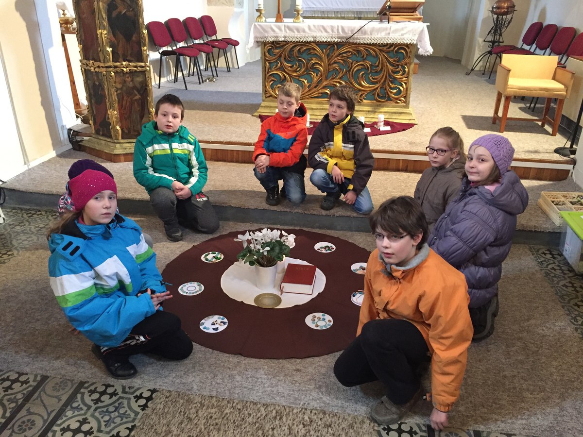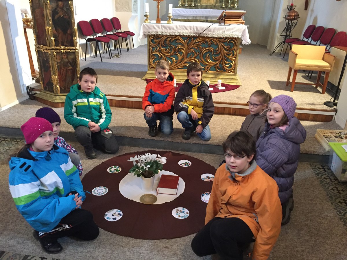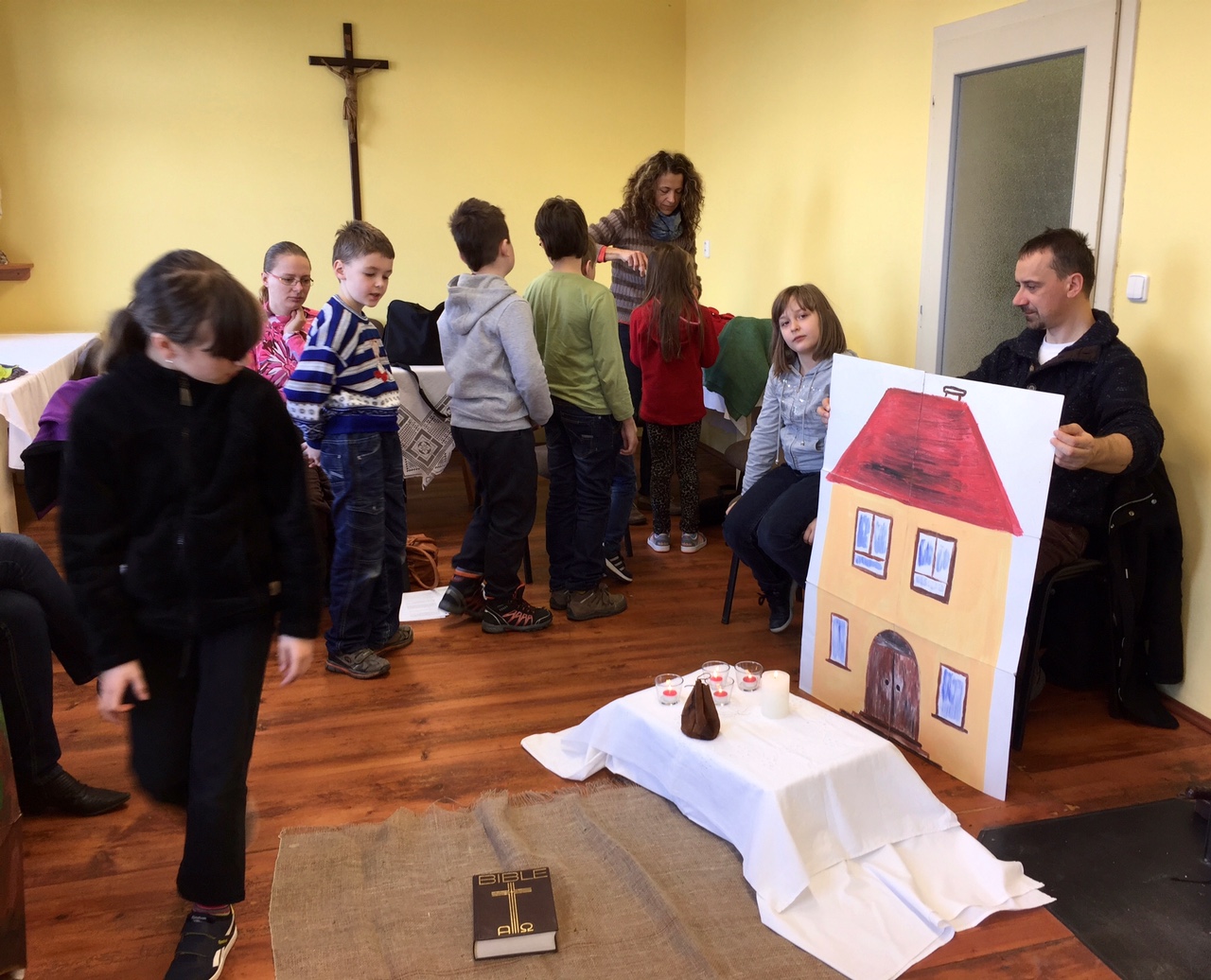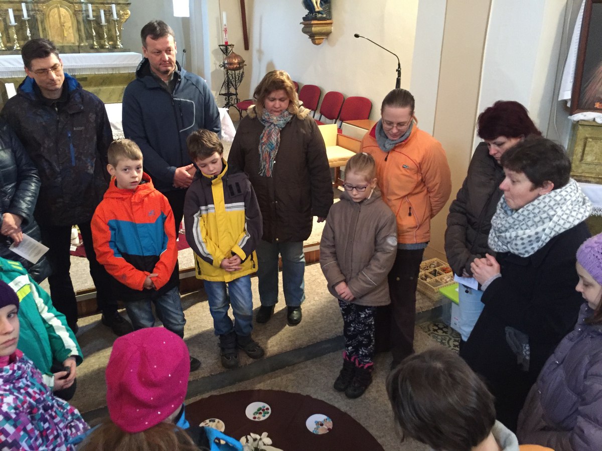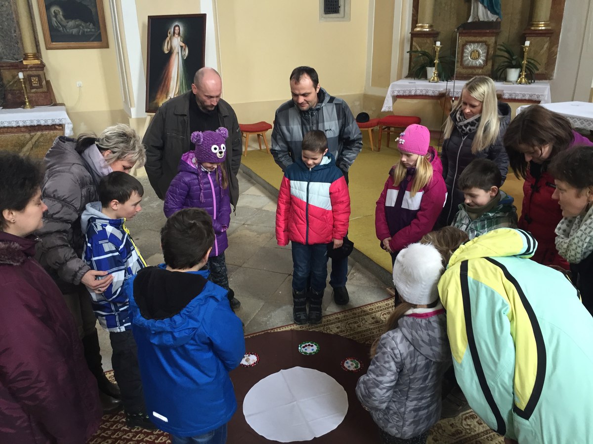 V sobotu 16. 4. se uskutečnilo 4. setkání rodičů a dětí, které letos půjdou poprvé ke svatému přijímání. Tématem setkání byla bohoslužba oběti. Děti přemýšlely nejdříve o obilném zrnu, které musí padnout do země, aby přineslo užitek. Na příkladu obilí si měly uvědomit, že život a smrt patří k sobě, že umírání přináší plody a že Ježíšova oběť nám dává život. Při práci s hroznem vína děti vnímaly, že jsou s ostatními kolem jednoho středu, že Ježíš je vinný kmen a my jsme ratolesti.