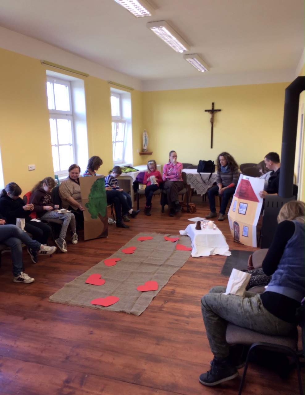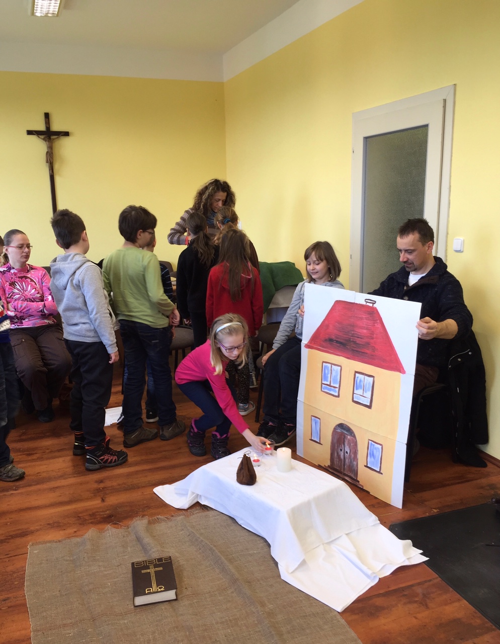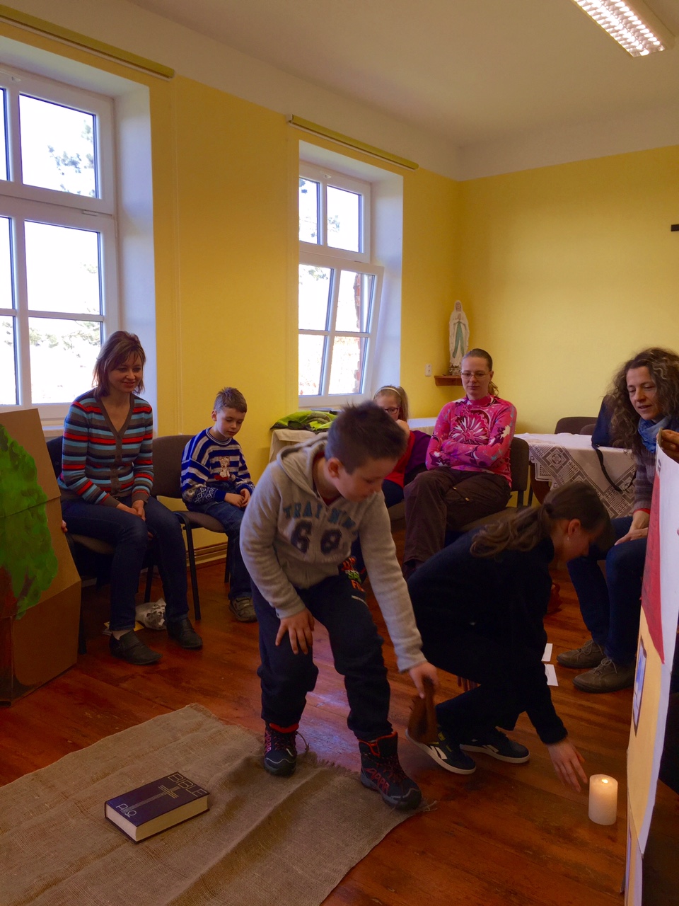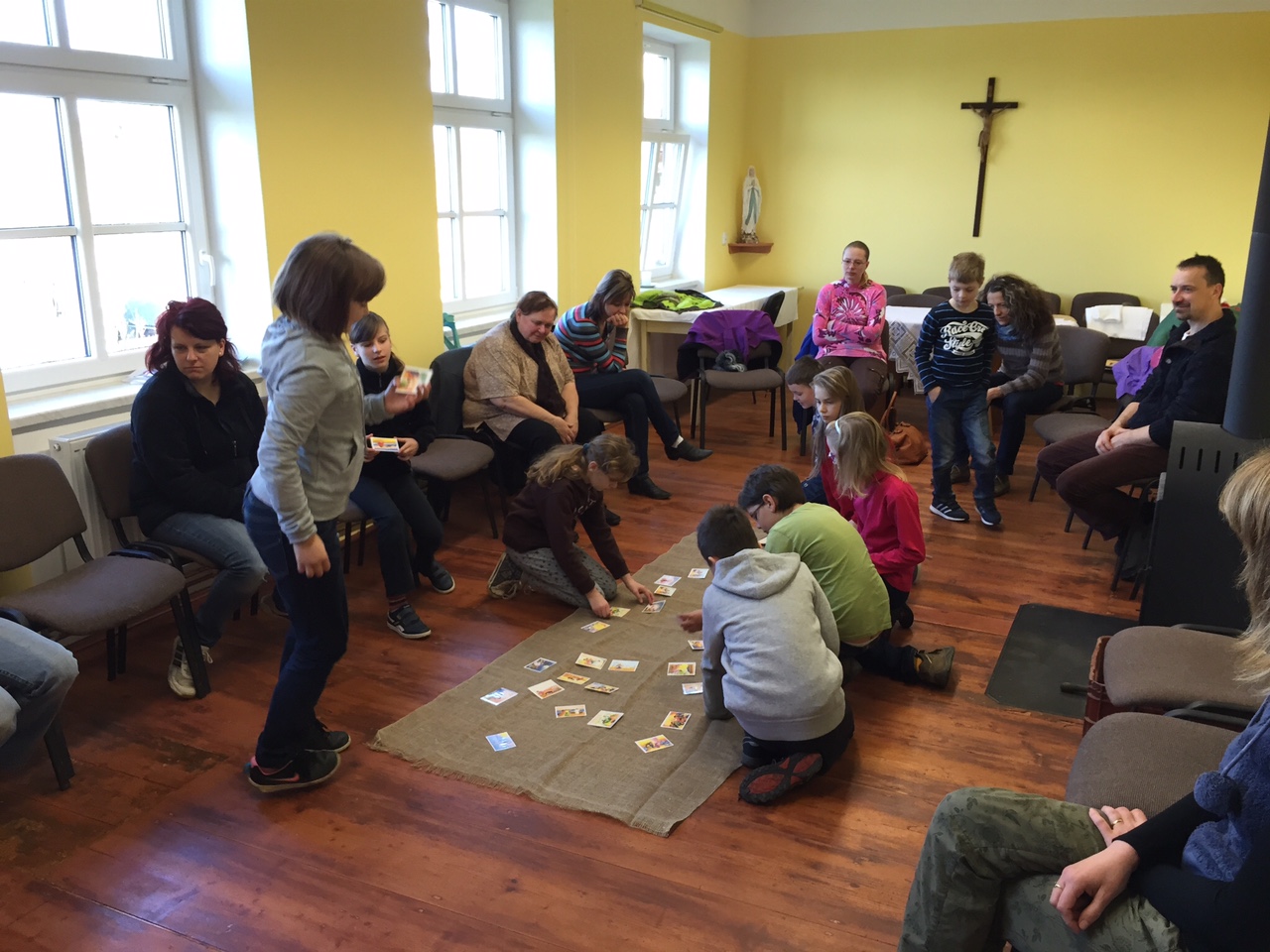 V sobotu 16. 4. se uskutečnilo 4. setkání rodičů a dětí, které letos půjdou poprvé ke svatému přijímání. Tématem setkání byla bohoslužba oběti. Děti přemýšlely nejdříve o obilném zrnu, které musí padnout do země, aby přineslo užitek. Na příkladu obilí si měly uvědomit, že život a smrt patří k sobě, že umírání přináší plody a že Ježíšova oběť nám dává život. Při práci s hroznem vína děti vnímaly, že jsou s ostatními kolem jednoho středu, že Ježíš je vinný kmen a my jsme ratolesti.