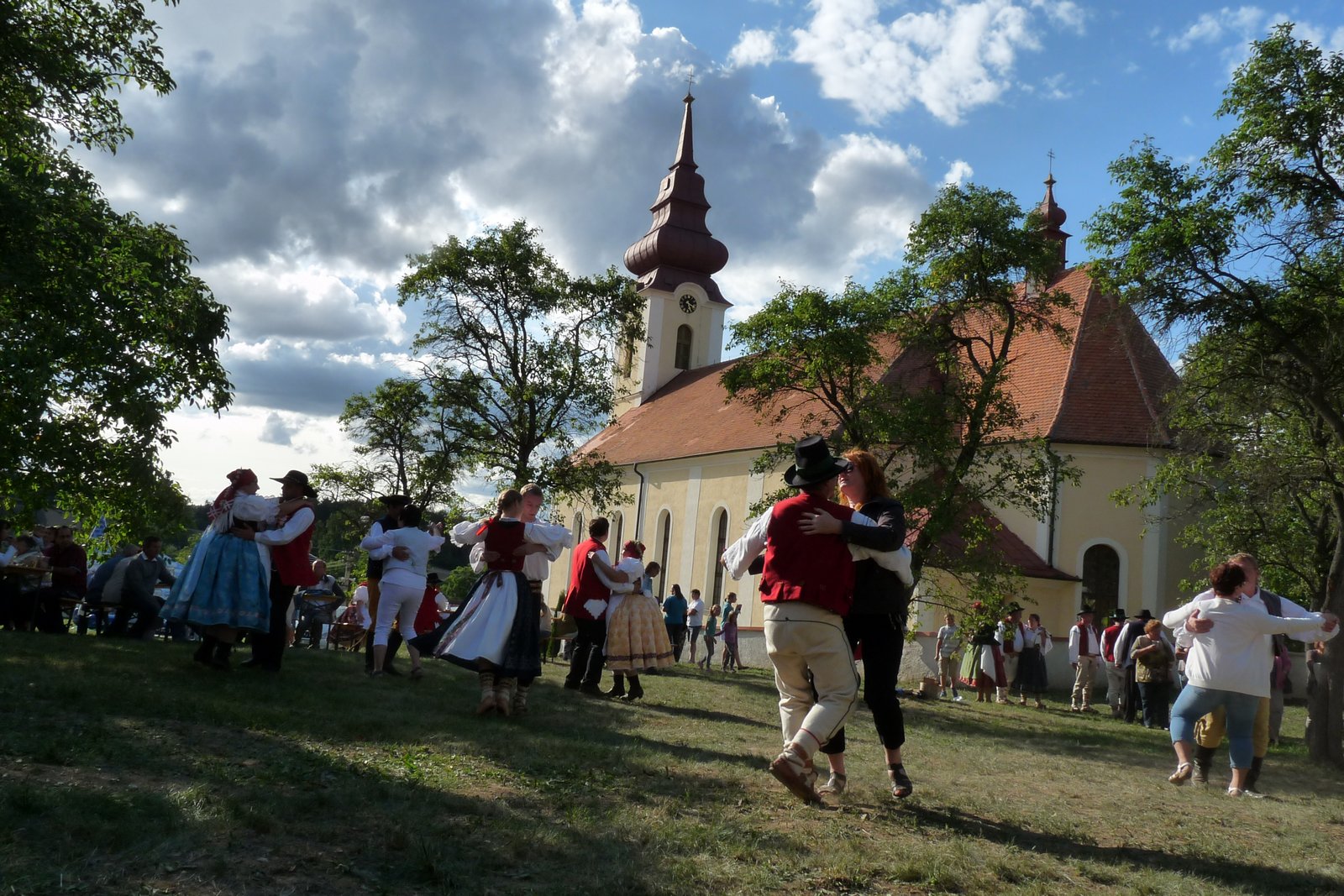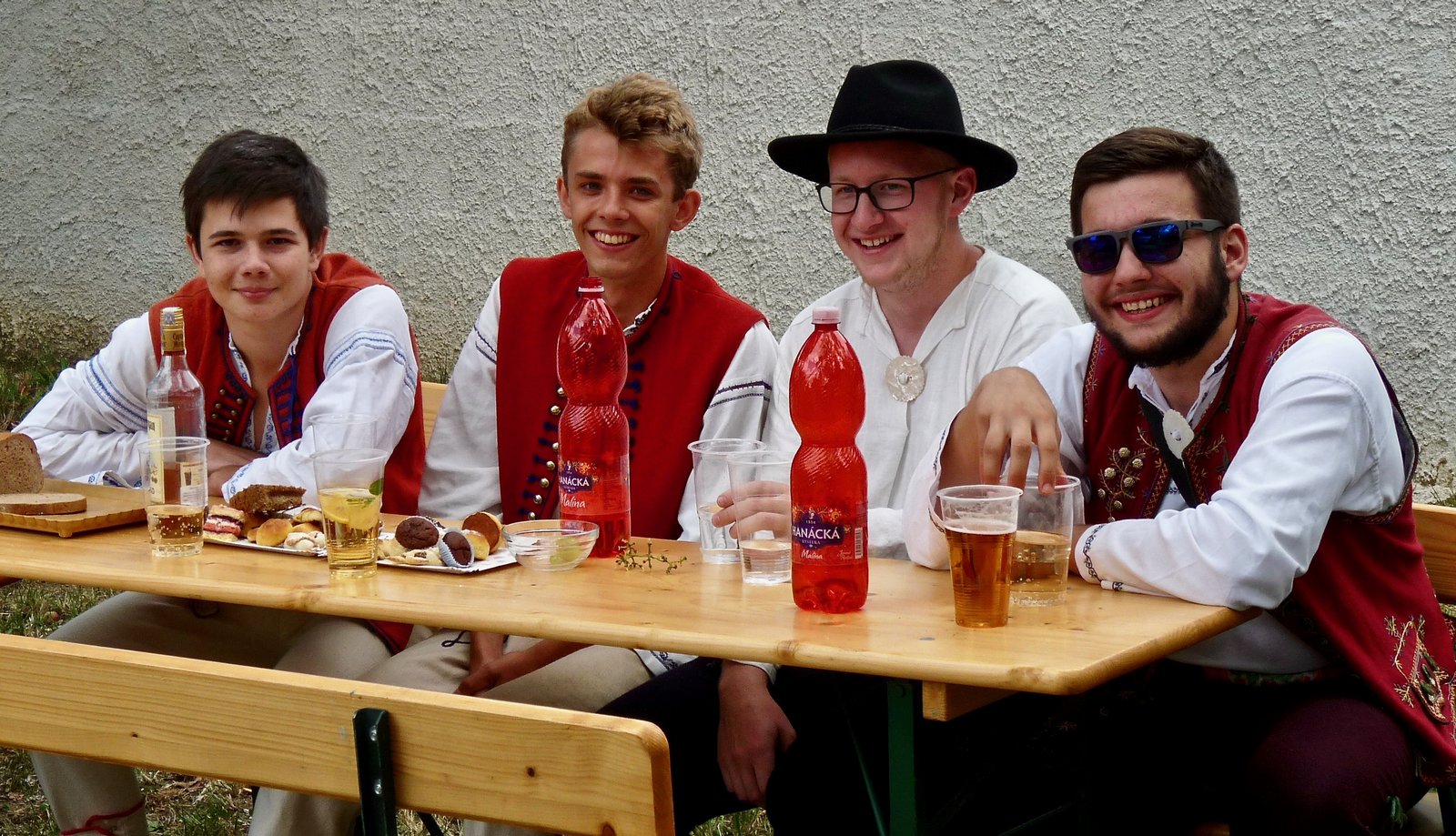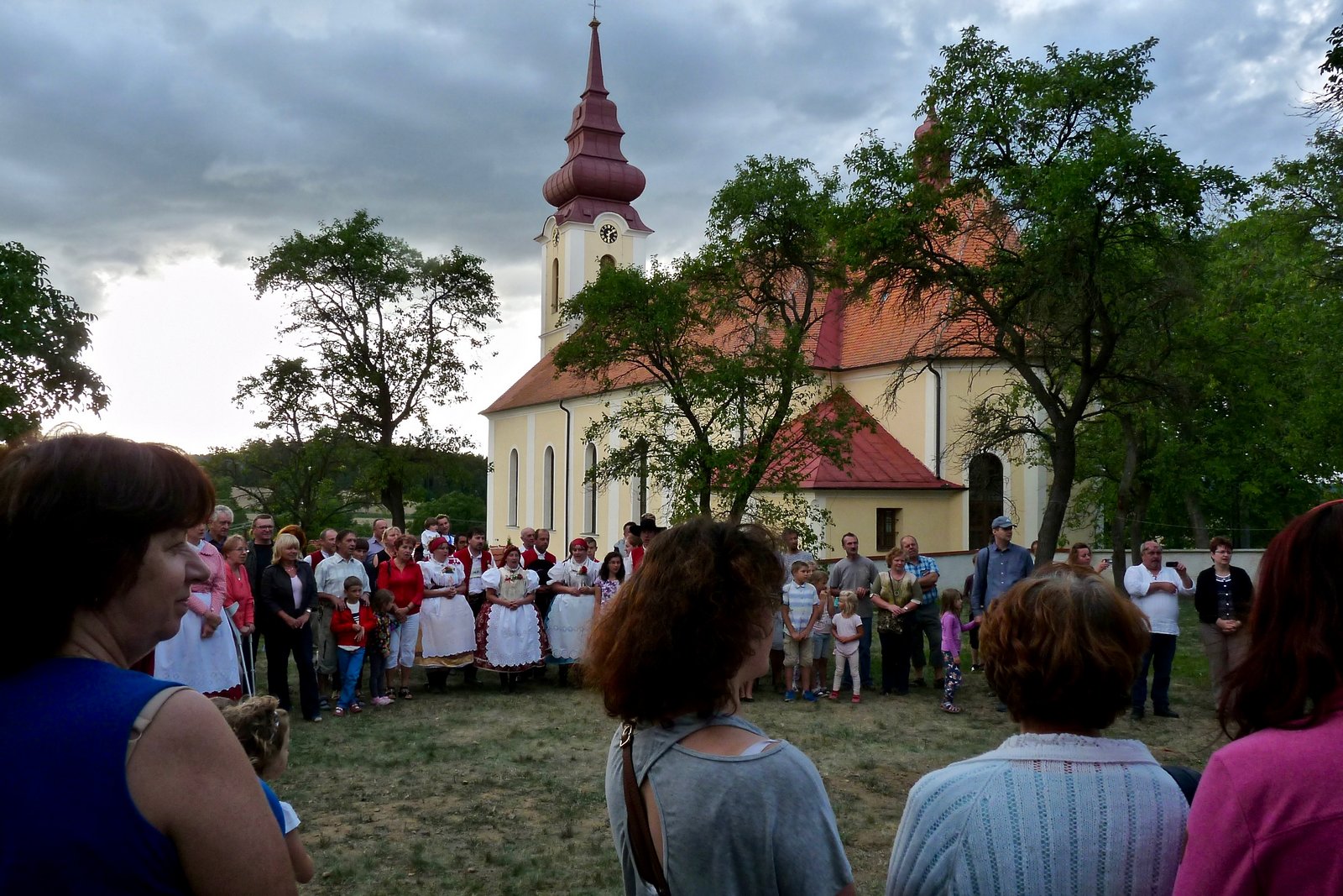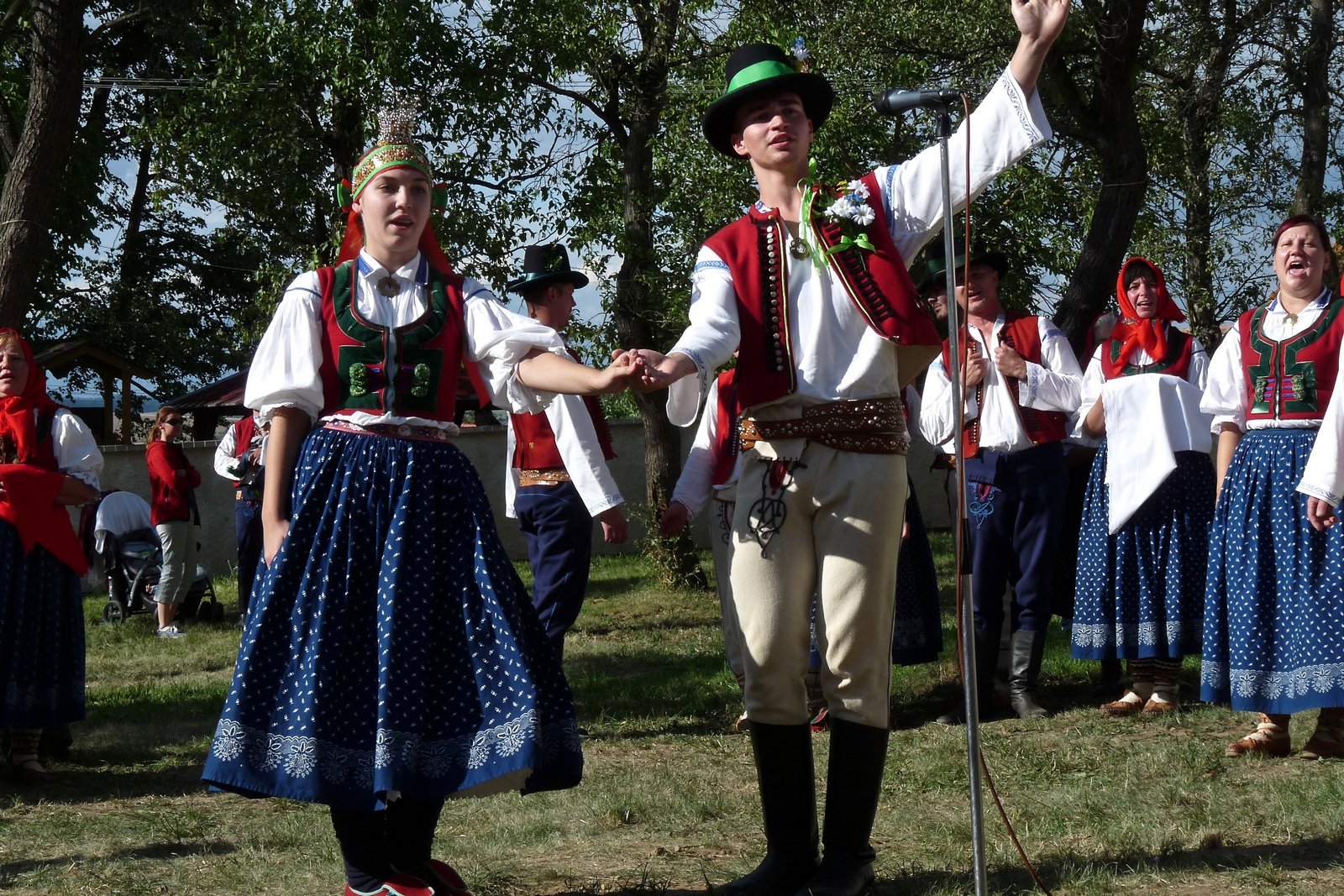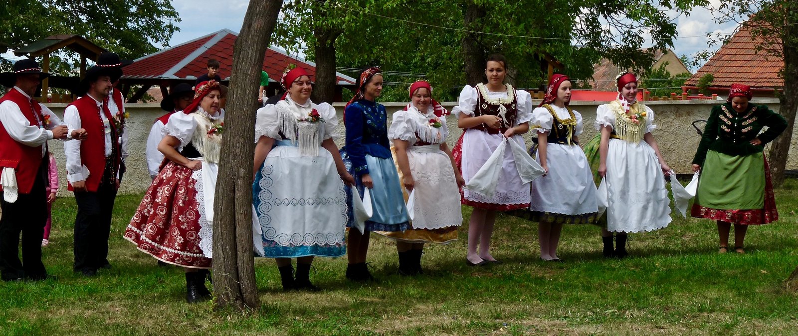 Po výborném guláši (dík paní Kvapilové :-) ), který se podával hned po mši svaté na zahradě u fary, začalo představení folklórních souborů. Dětský soubor z Moravských Budějovic předvedl kouzelné vystoupení pod vedením Aničky Prokopové, soubory z Martinkova a Telnice přijely s nádhernými ukázkami dobových zvyků a tanců ze svého prostředí a na závěr vystoupili Valaši s ukázkou valašských tanců a dovedností ogarů s obušky a zakončili částí „Valašské svatby“, jak ji zaznamenal v kronice místní farář P. Antonín Přibyl (celá „svatba“ by trvala přes 4 hodiny – poznamenal jeden z účinkujících). Menší nevýhodou byl siný vítr, který znemožnil kvalitní poslech, ale když družba oslovil posluchače, aby jim vysvětlil, že chtějí vybrat „opravdu dobrú, pracovitú a hodnú nevěstu pro dvojctihodného ženicha“, a dodal: „vy temu přecaj rozumíte, šak máte také děti!“ mnozí diváci s dojetím přitakali, - to si přeje přece každý, aby jeho děti byly v životě šťastné…
