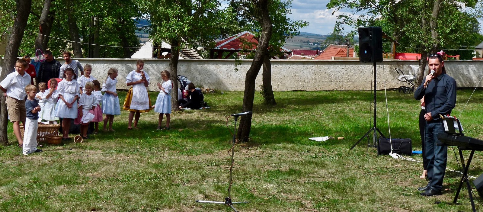 Celý program doprovázela cimbálová muzika Jana Ohryzka a dechová kapela Polančanka a když po devatenácté hodině hosté odjížděli (v pondělí se přece musí do práce), dlouho trvalo, než se všichni rozloučili. Díky Pánu Bohu: za počasí :-), za to, že se tolik lidí zapojilo do přípravy farní zahrady, za všechny, kdo připravili pohoštění a obsluhovali, díky Orlům z Moravských Budějovic za zapůjčení skákacího hradu díky i všem, kteří jakýmkoli způsobem přispěli k dobré náladě.