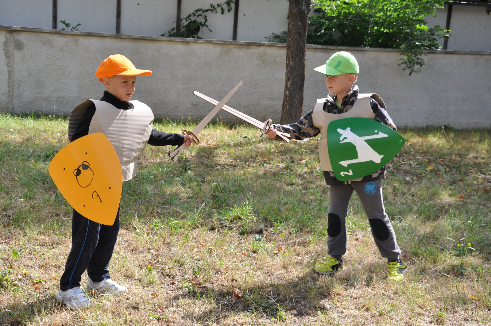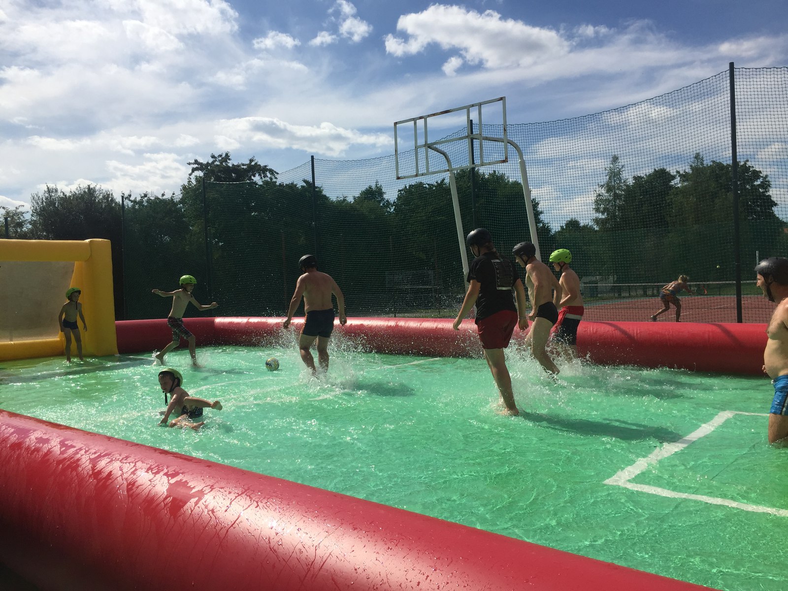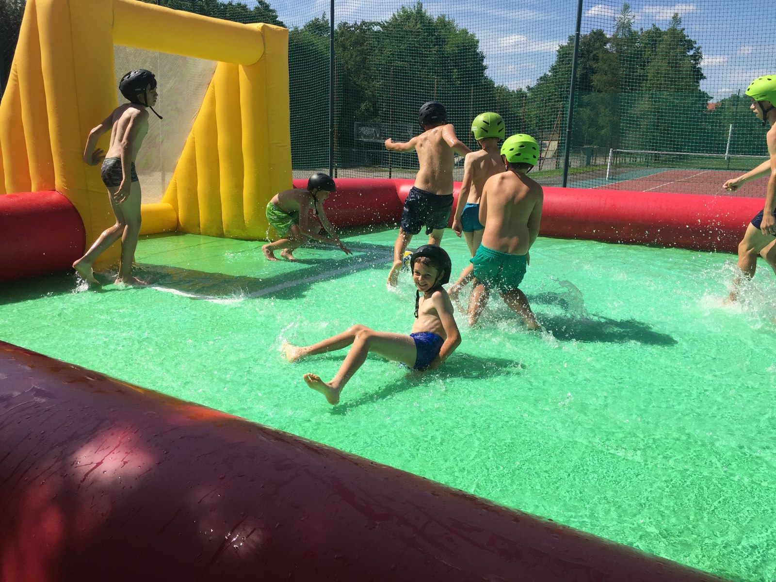 Při venkovním programu jsme museli bojovat s nepřízní počasí, takže některé sportovní aktivity doslova uhýbaly dešti, některé se hold odehrály v něm (náš táborový fotbalový turnaj v Cidlině) – nakonec, hrdinové přece nebývají z cukru... Sportovních klání bylo tradičně dostatek: kromě fotbálku na trávě i ve vodě nás čekalo ragby s upravenými pravidly, baseball, rytířské hry (šerm mečem, silové disciplíny), střelba z luku a vzduchovky, výstup na lezecké stěně, procházka s chůdami, zdolání adrenalinové lanové trati v osmi metrové výšce, ale třeba i jízda zručnosti na čtyřkolce. Díky panu děkanovi Josefovi Brychtovi z Jemnice jsme si mohli porovnat síly ve fotbale s domácími ministranty, remízový zápas musely rozhodnout penalty, ve kterých nás místní kluci předčili. Gratulujeme!