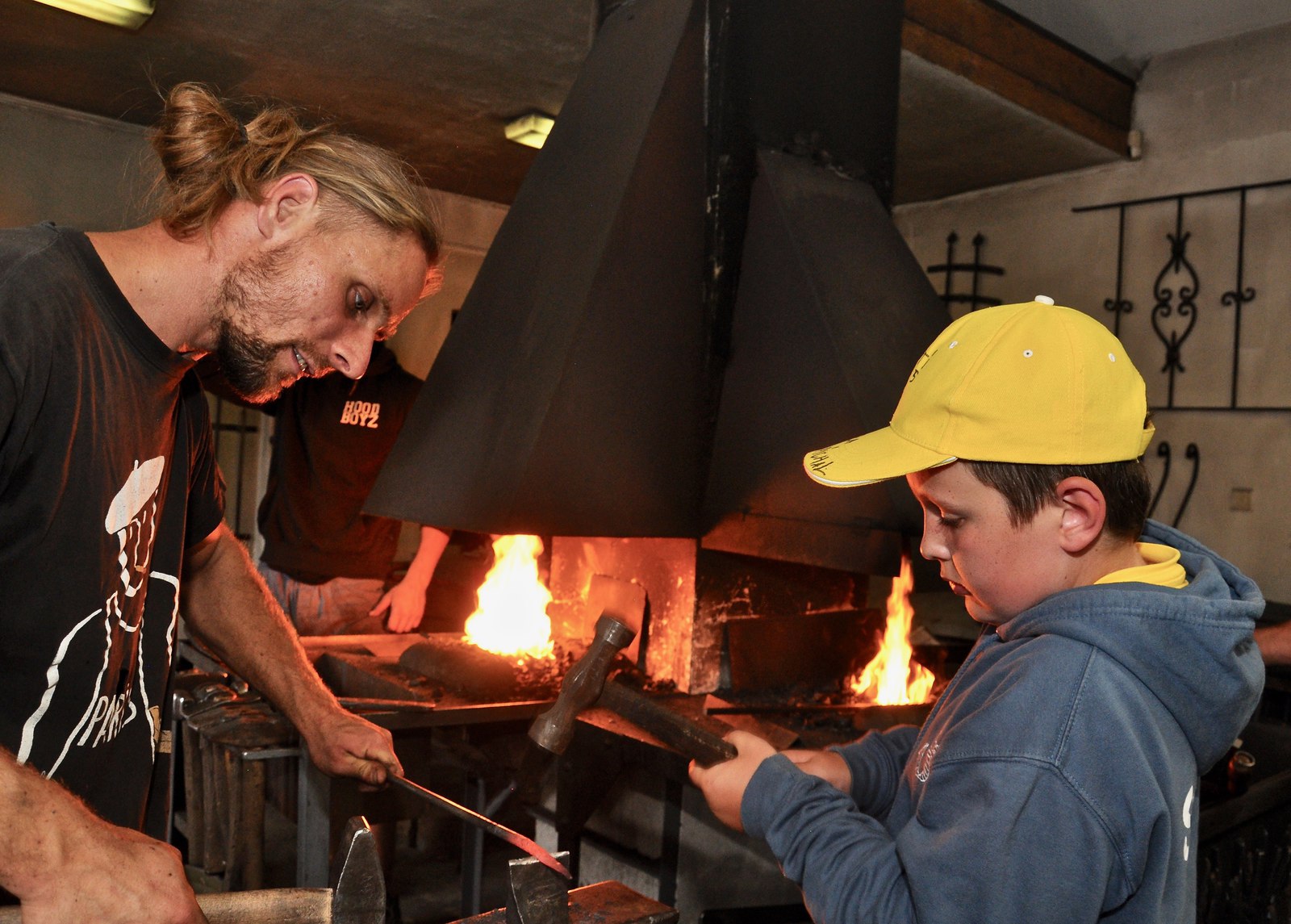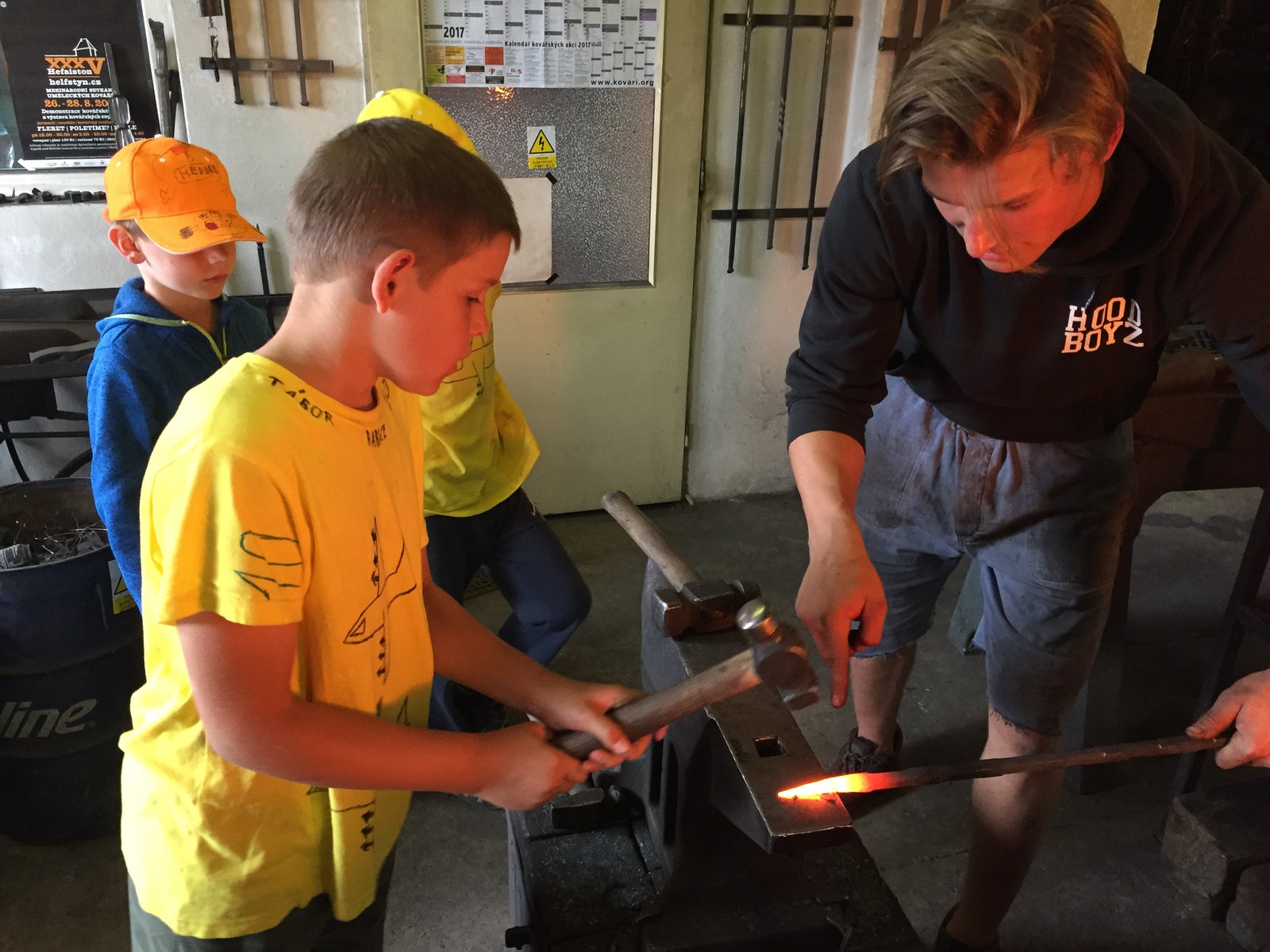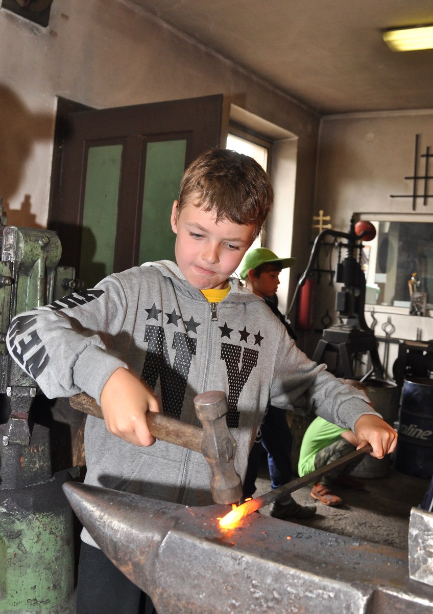 Všichni účastníci si užili tradičně bohatého programu. Kluky čekalo vyrábění táborových triček, vlajek, mečů a štítů, ale třeba i vykování vlastní železné špičky v uměleckém kovářství pana Václava Nohy ve Štěměchách (moc děkujeme). Nechybělo poznávání okolí při návštěvách kláštera v Kostelním Vydří, památkového centra města Telče (UNESCO), farního kostela a Šlezingerova sochařského odkazu v Jemnici (děkujeme, pane děkane), odvážně přestěhovaného kostela v Oslnovicích (klobouk dolů všem místním hrdinům) či staronového muzea R.A.F. na zámku v Polici. V našem „letním kině" ministranti shlédli vynikající film Mela Gibsona Zrození hrdiny, který byl natočený podle skutečných událostí (s některými vystřiženými scénami).
