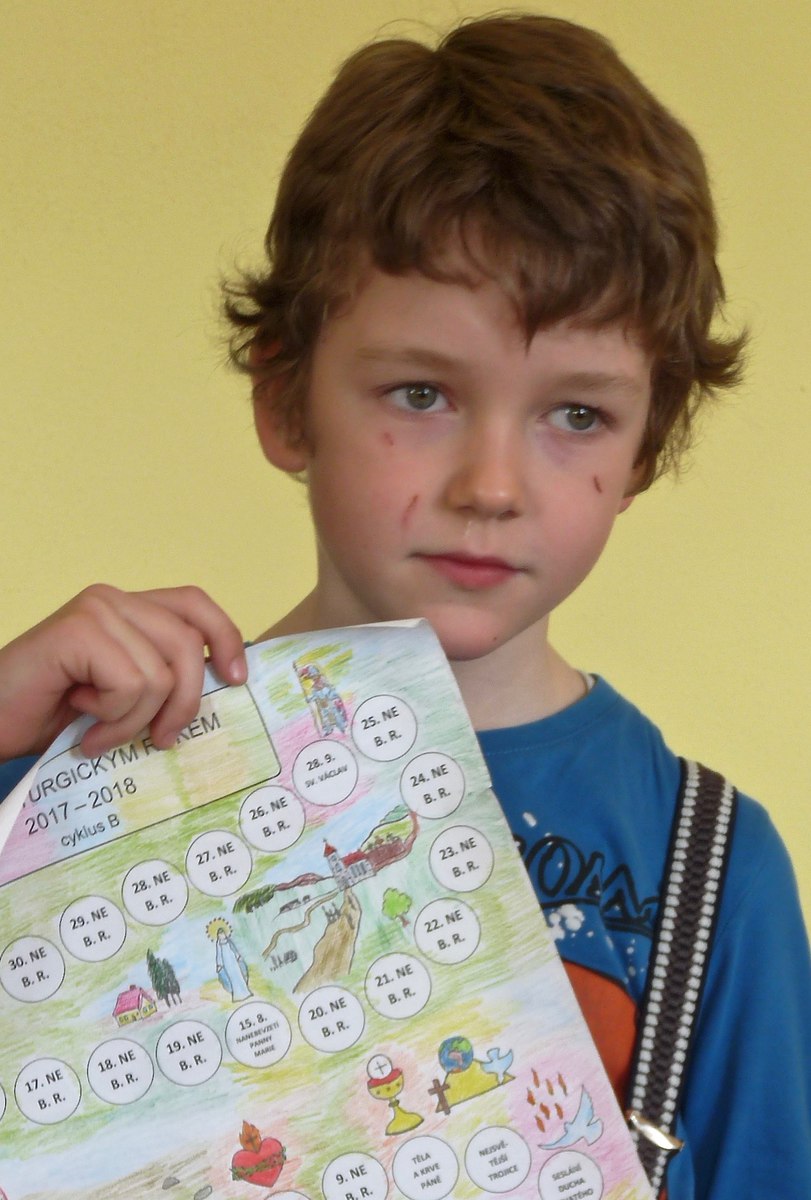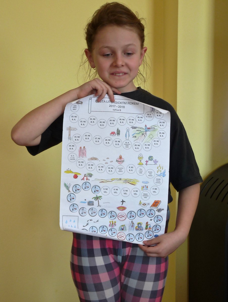 Na závěr jsme se všichni spojili ve společné modlitbě Otče náš. S písní " Když vím, co Ježíš pro mne vykonal" jsme odcházeli na faru, kde pokračoval program vyhodnocením soutěže s odměnou. Po občerstvení jsme vyběhli na hřiště, kde si děti zasoutěžily. Velký úspěch měl závod v běhu, kde si s dětmi zasoutěžil i otec Ladislav. Poděkování patří otci Ladislavovi, velmi šikovné katechetce Jitce Šebkové a všem, kteří pomáhali toto odpoledne připravit!