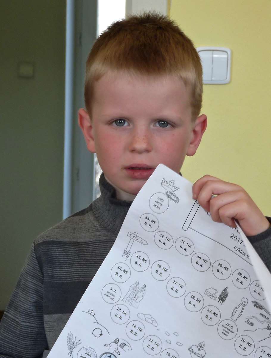 Na závěr jsme se všichni spojili ve společné modlitbě Otče náš. S písní " Když vím, co Ježíš pro mne vykonal" jsme odcházeli na faru, kde pokračoval program vyhodnocením soutěže s odměnou. Po občerstvení jsme vyběhli na hřiště, kde si děti zasoutěžily. Velký úspěch měl závod v běhu, kde si s dětmi zasoutěžil i otec Ladislav. Poděkování patří otci Ladislavovi, velmi šikovné katechetce Jitce Šebkové a všem, kteří pomáhali toto odpoledne připravit!